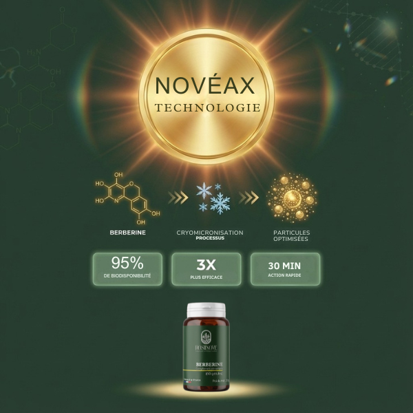 La berberine cryomicronisée utilisent la technologie NOVÉAX, une extraction à froid sans solvant, pour préserver 95 % des actifs végétaux et garantir une biodisponibilité maximale.